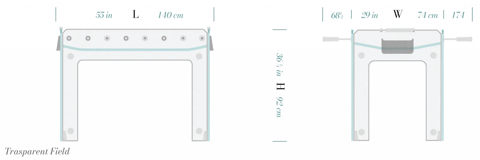 - Campo de jogo: Em vidro laminado: Estrutura de vidro espesso aumenta a velocidade do jogo.